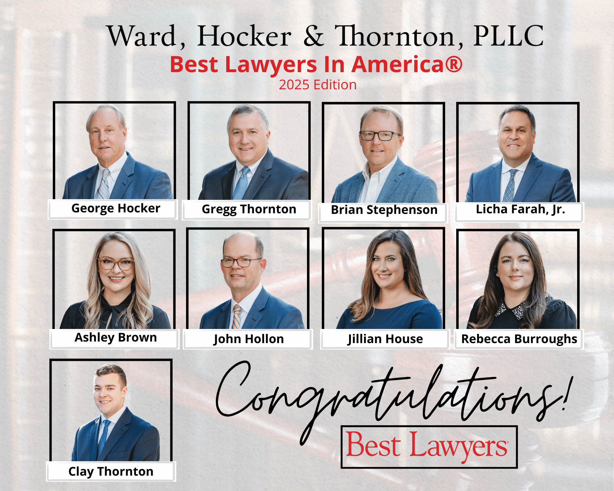 Ward, Hocker & Thornton, PLLC would like to congratulate the following lawyers named to 2025 The Best Lawyers in America list: