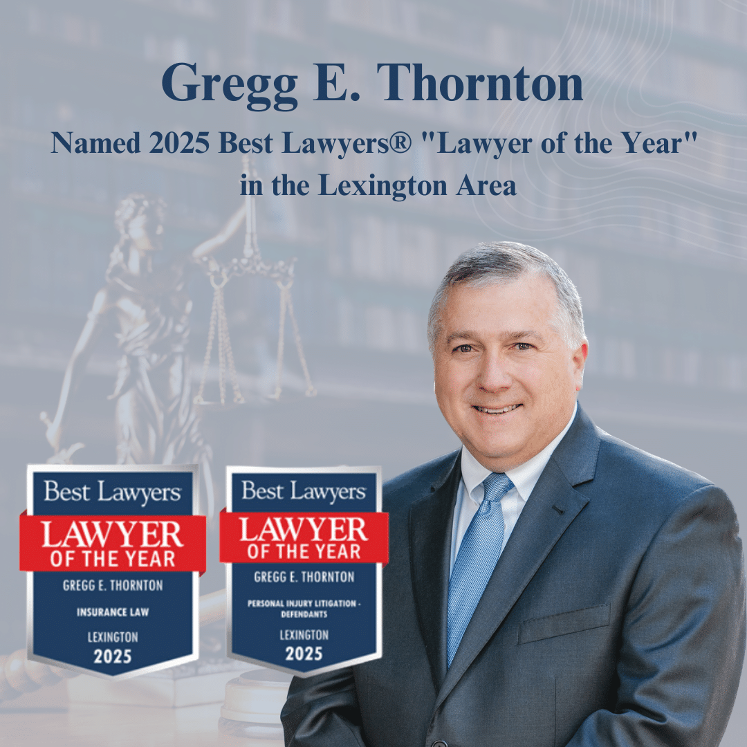 Ward, Hocker & Thornton, PLLC attorney Gregg E. Thornton was recently recognized by Best Lawyers as the 2025 “Lawyer of the Year” for Insurance Law and Personal Injury Litigation – Defendants in Lexington.